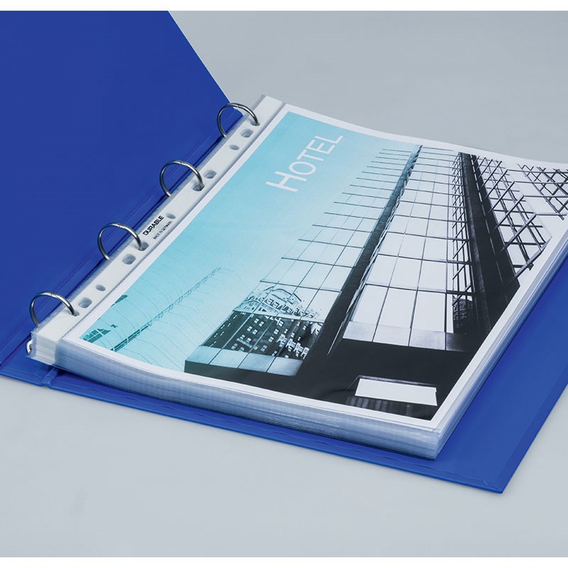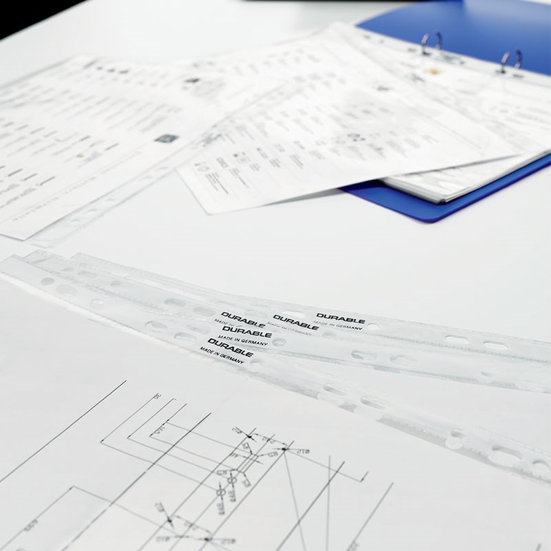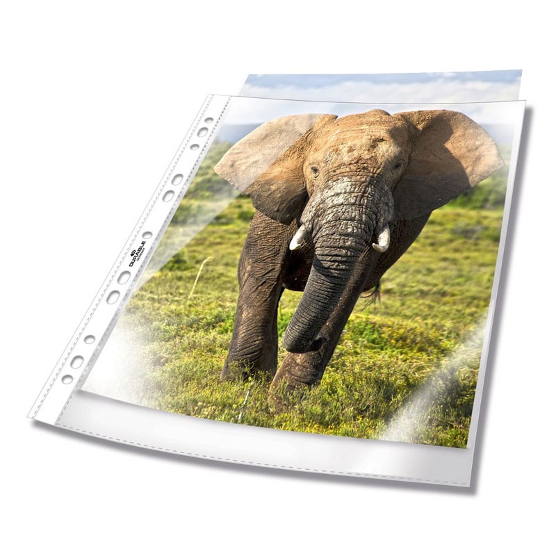 Prozirni fascikl od polipropilena s univerzalnim rupicama za ulaganje u registratore ili prospekt mape, otvor s gornje strane.