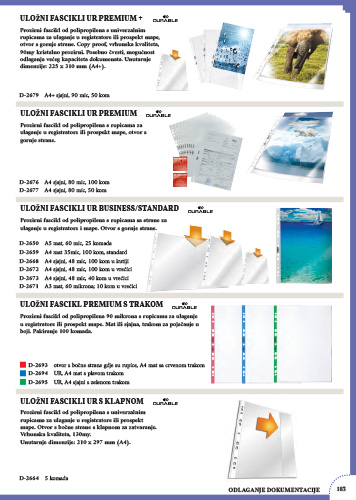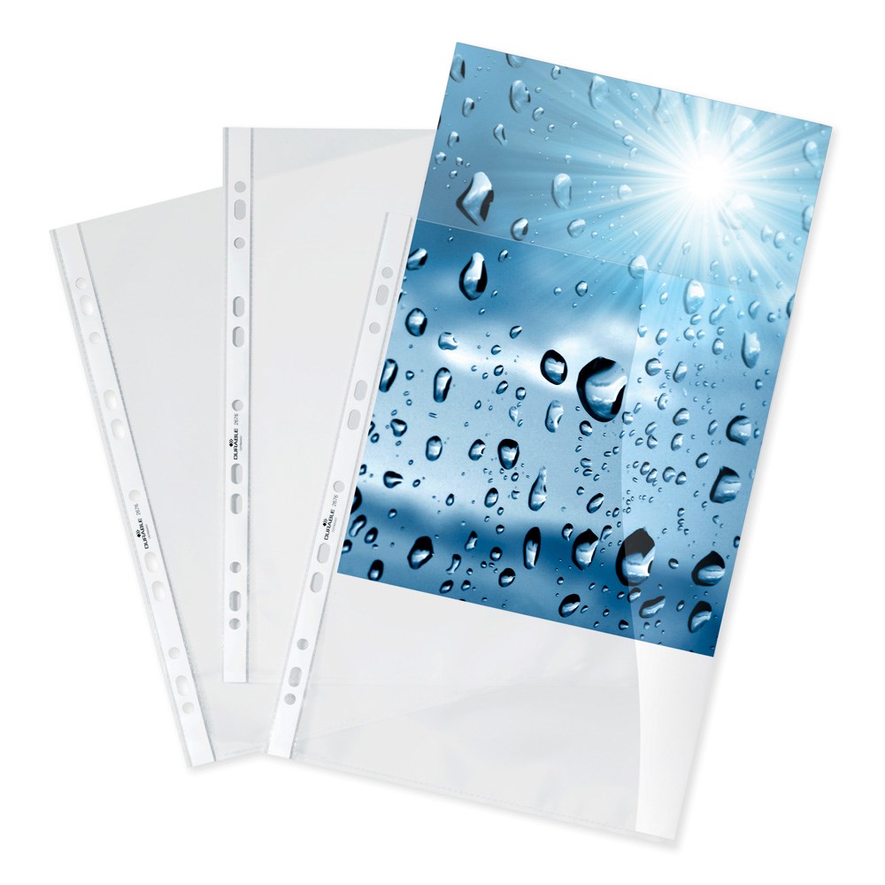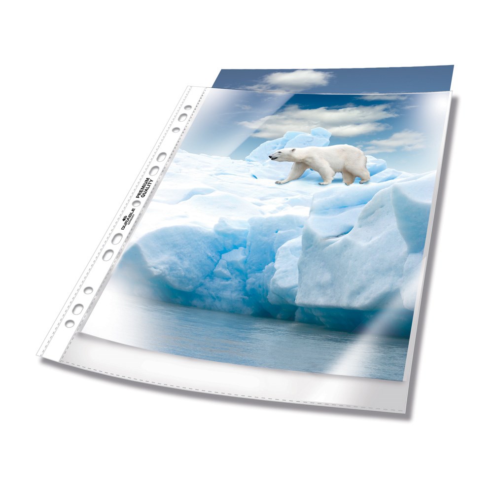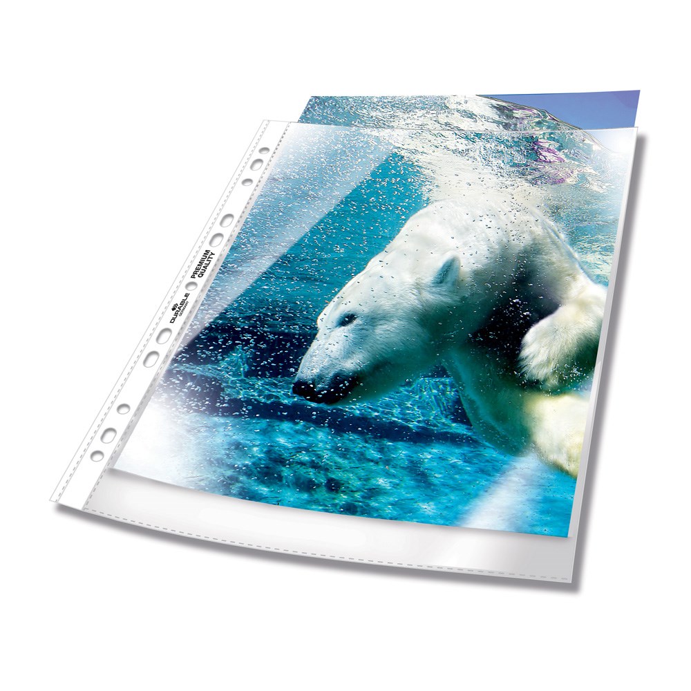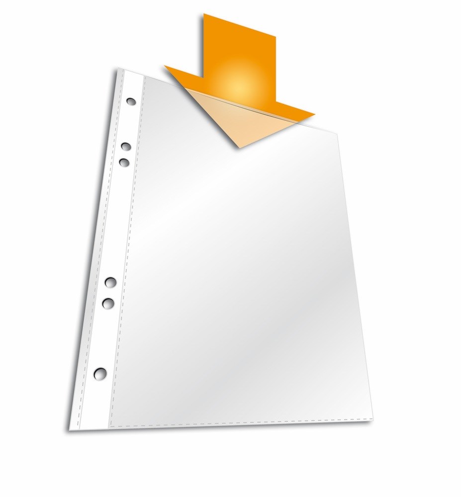 Prozirni fascikl od polipropilena s univerzalnim rupicama za ulaganje u registratore ili prospekt mape, otvor s gornje strane.