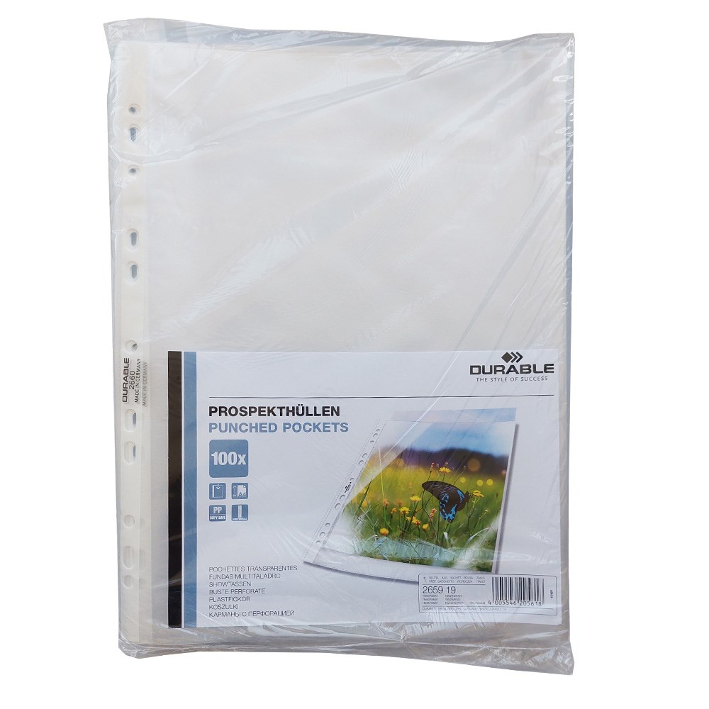 Prozirni fascikl od polipropilena s univerzalnim rupicama za ulaganje u registratore ili prospekt mape, otvor s gornje strane. Copy proof, standardna kvaliteta, 35 mikronamat.