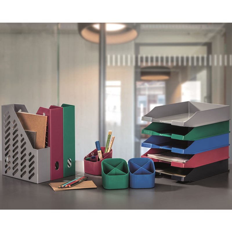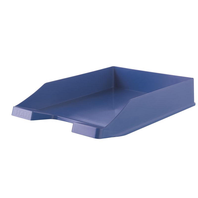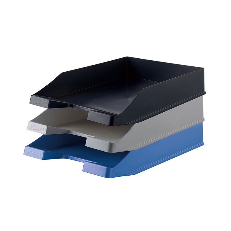 Ladica za spise KLASSIK KARMA za formate A4/C4 od 100% reciklirane plastike s certifikatom Blue Angel. Mogućnost slaganja jedne na drugu. Nagrađen nagradom 'PLAVI ANĐEO'. Blago zakošeni prednji dio sprječava i isklizavanje dokumenata.