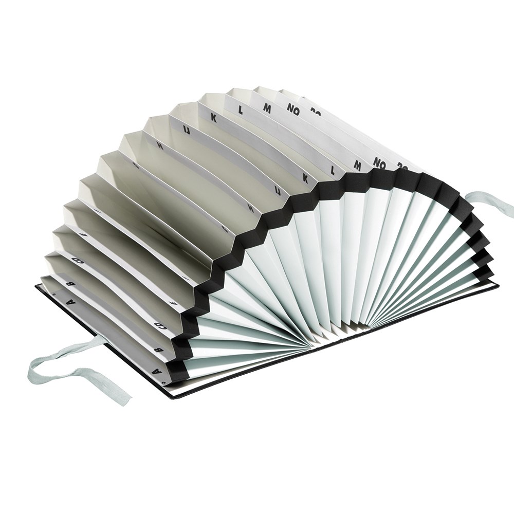 Izdržljiva harmo mapa za razvrstavanje i odlaganje dokumenata, računa, radnih naloga i slično. Plastične korice, 20 rastezljivih odjeljaka s natpisima A-Z, zatvaranje vrpcom.