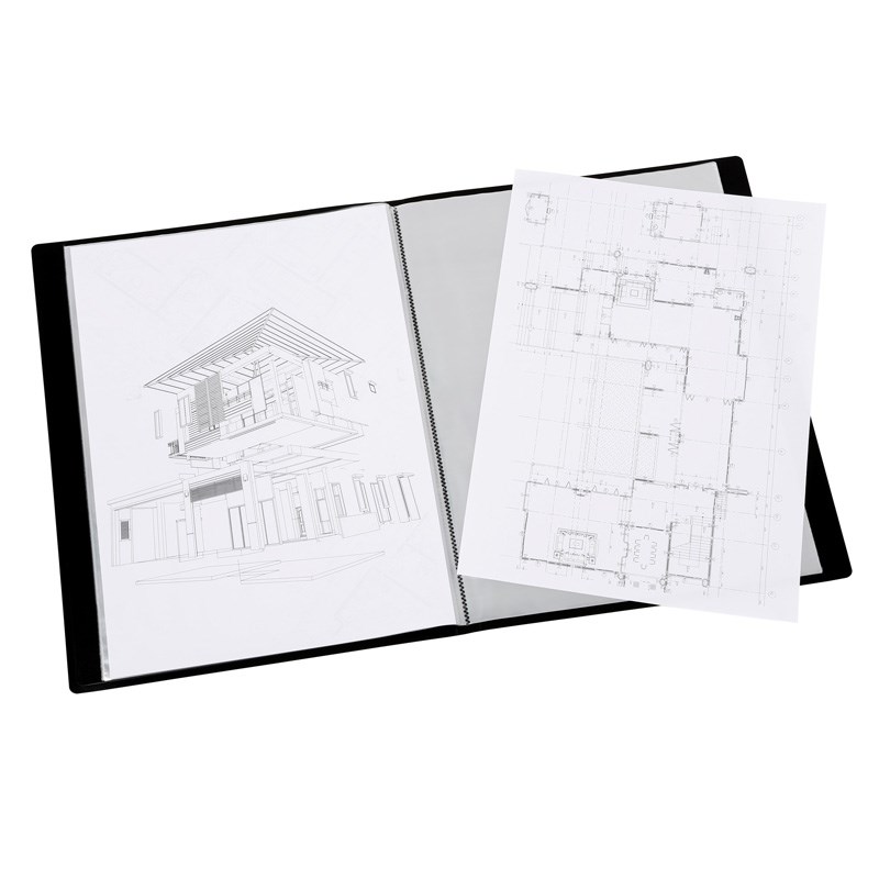 Prospekt mapa za arhiviranje dokumenata velikog A3 formata i prijevoz crteža. Crne i otporne plastične korice.