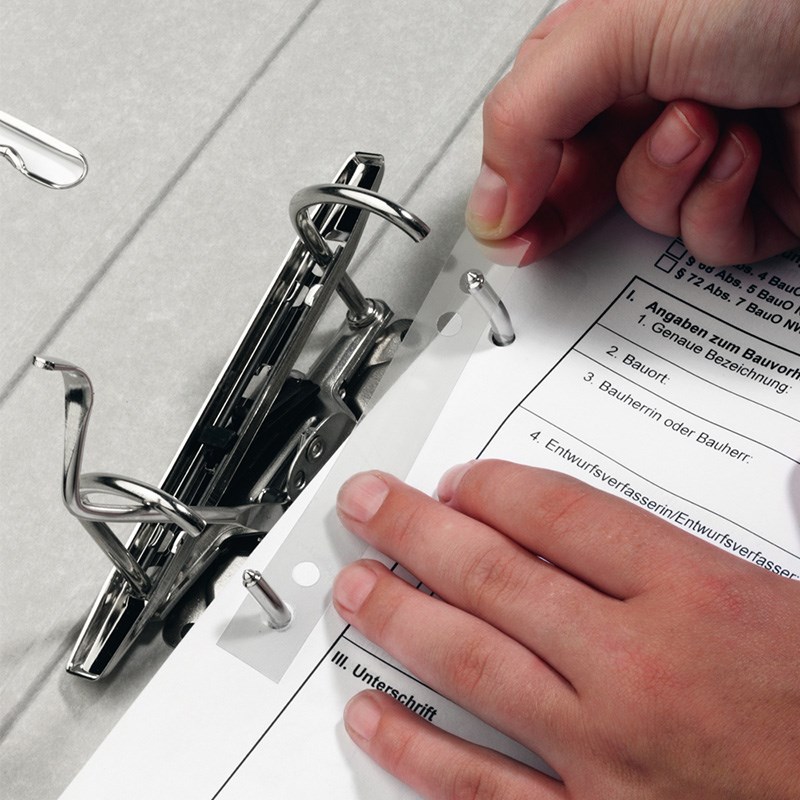 Samoljepivi ojačivači za rupice na traci. Standardni razmak rupica.