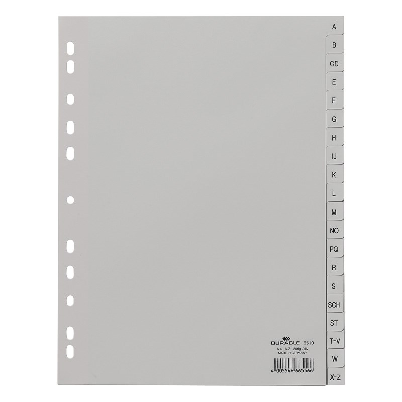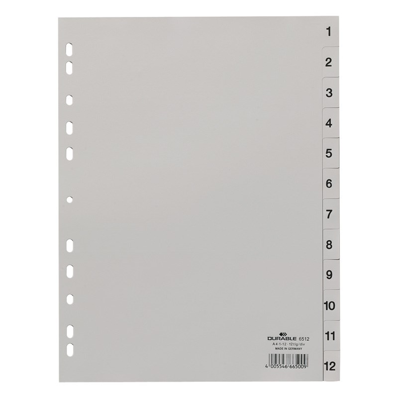 Pregradni registri od sivog polipropilena. Format A4, univerzalne rupe.