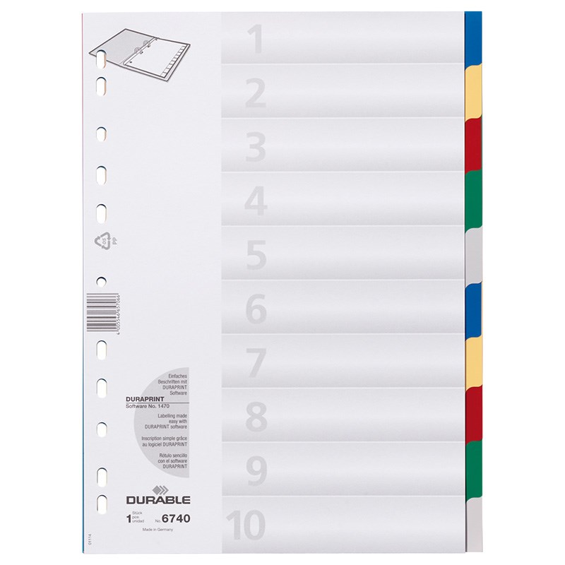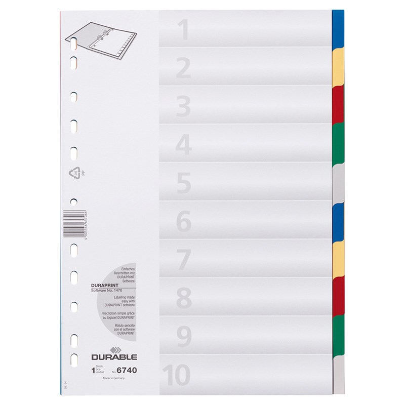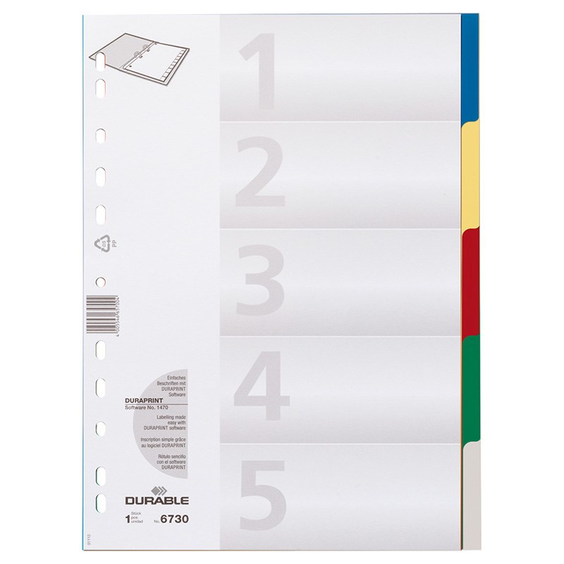 Pregradni registri od sivog polipropilena. Format A4, univerzalne rupe.