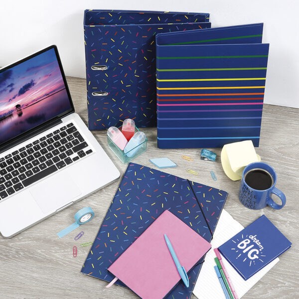 Registrator Envy izrađen je od tvrdog kartona s 2 metalna prstena. Rub registratora je 7 cm kako bi se osigurao maksimalni kapacitet pohrane. Mat laminacija kartona i obostrani tisak čine proizvod atraktivnijim.