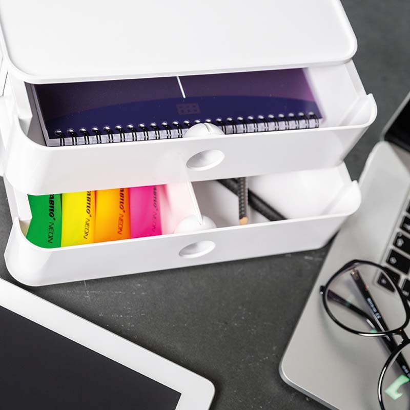 Kutija s 2 ladice. Vrhunska kvaliteta. Mogućnost slaganja jedne na drugu i kombiniranja s ostalim ALLISON namještajem. Jedinstven i inovativan dizajn visokog sjaja za raznu primjenu: u uredu, na sastanku ili kod kuće. Protuklizna podloga. S držačem kabela u podnom okviru. Funkcionalni dodaci i pomične pregrade unutar ladice.