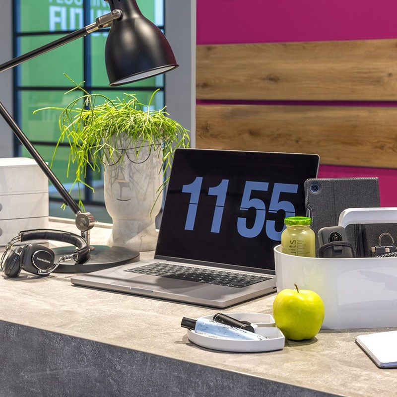 Nakon odrađenog posla, sve se može posložiti i spremiti zajedno na jedno mjesto. Dizajn s površinom visokog sjaja uklapa se u svako životno i radno okruženje.