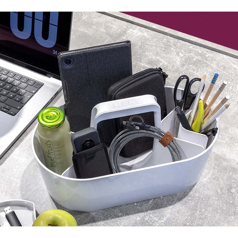 HAN Toolbox LOFT je odgovor na novi način rada i trendove kao što je dijeljenje stola i hibridni rad na raznim lokacijama. Kutija za pribor LOFT osigurava više fleksibilnosti na radnom mjestu - kod kuće i u uredu.