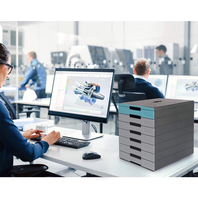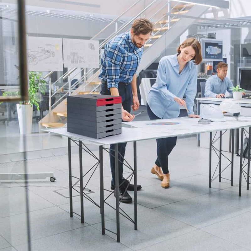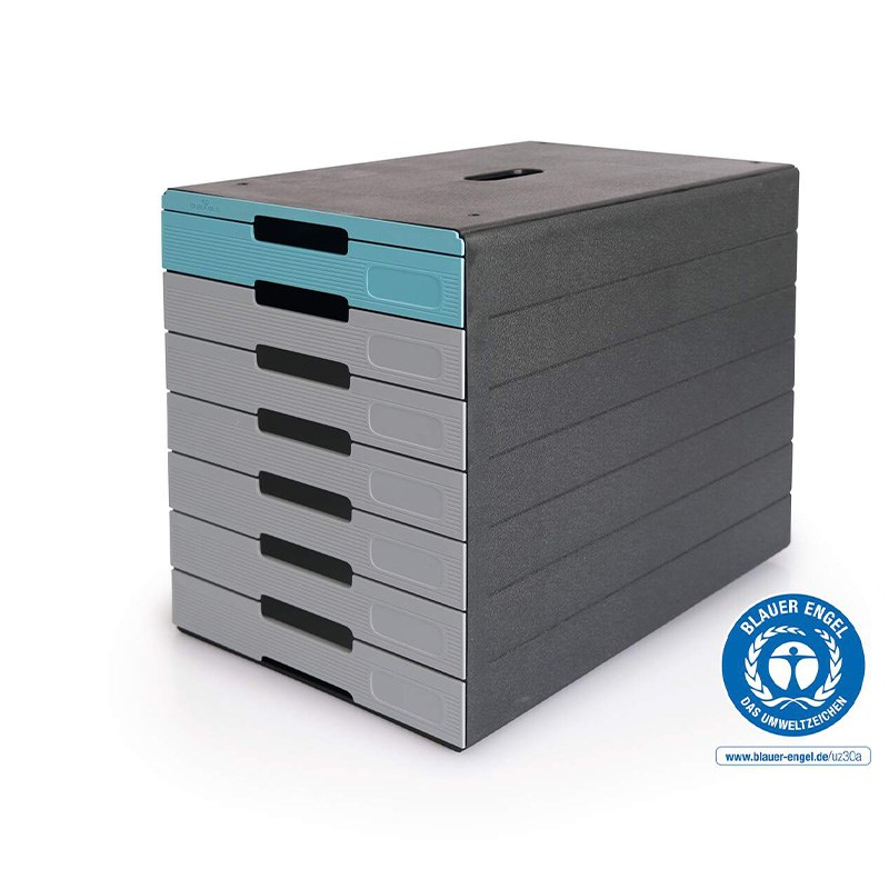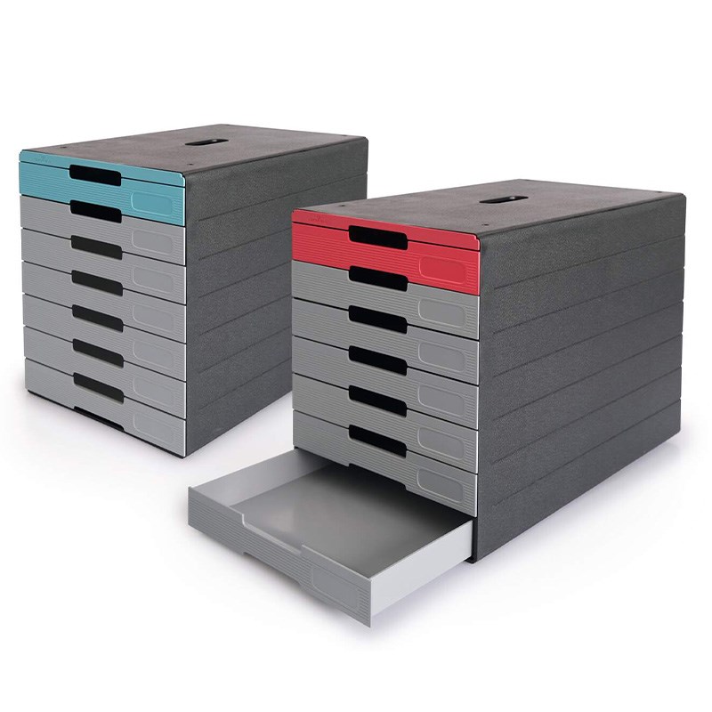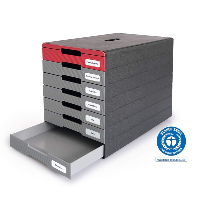 Kutija sa 7 ladica za odlaganje papira, dokumenata do formata C4, te ostalog pribora. Sadržaj u ladicama može se označiti računalno obradivim ljepljivim naljepnicama.