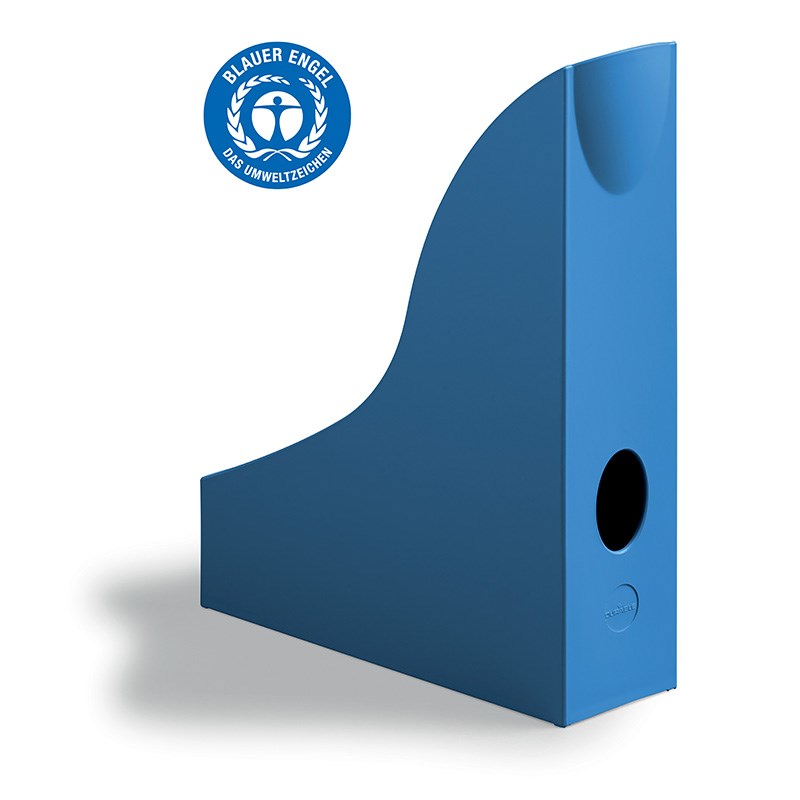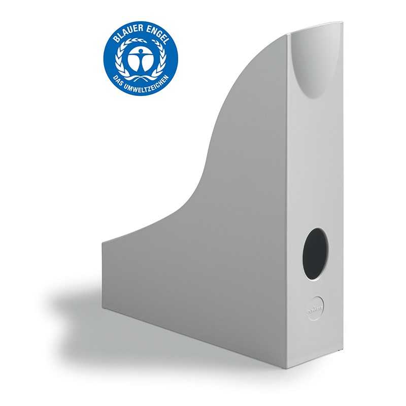 Praktičan stalak za prospekte od reciklirane plastike s Blue Angel oznakom. Bezvremenski dizajn. Idealne za časopise, brošure i kataloge A4 formata. S rupom za prst za jednostavno dohvatiti. Dimenzije: 73 x 306 x 241 mm (Š x V x D)