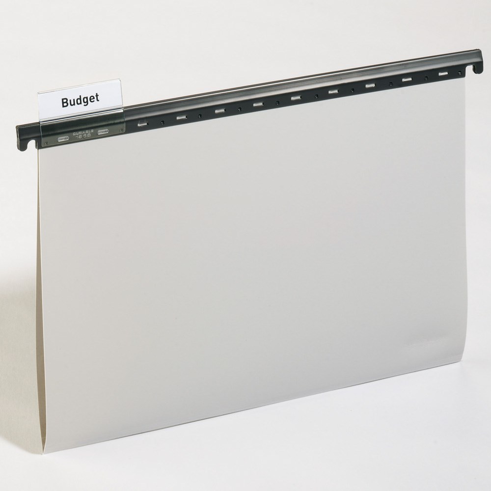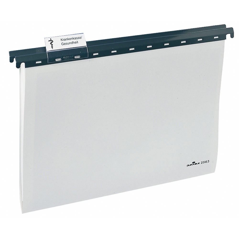 Viseće mape od otpornog polypropilena. Plastične kukice za šinu, index prozirni prozorčići 60 mm s praznim karticama i A-Z umecima.