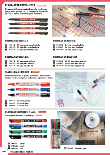 Permanentni flomaster za pisanje po svim površinama (folija, staklo, plastika, CD,...). Vodootporan, brzo se suši, otporan na svjetlo, može se korigirati alkoholom.