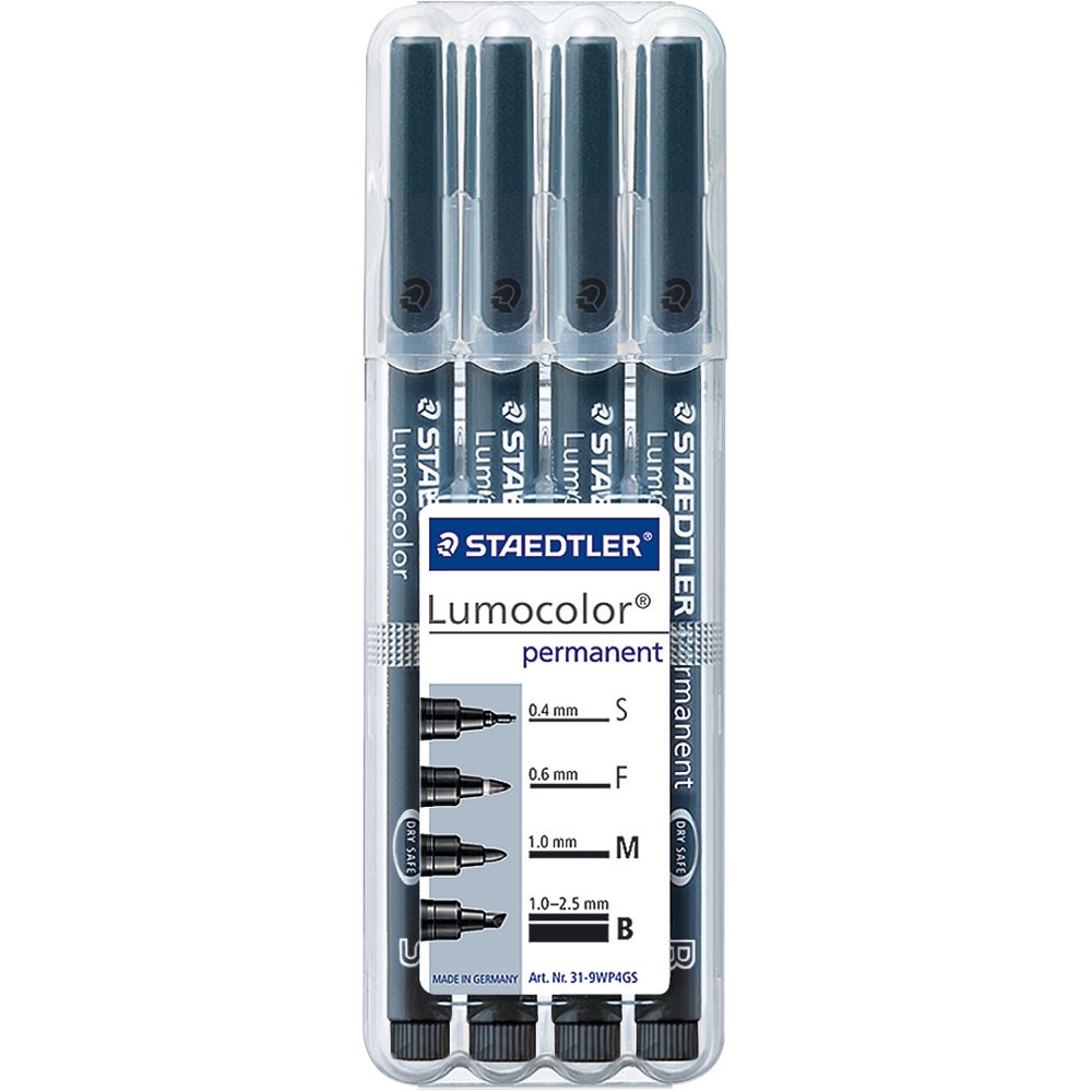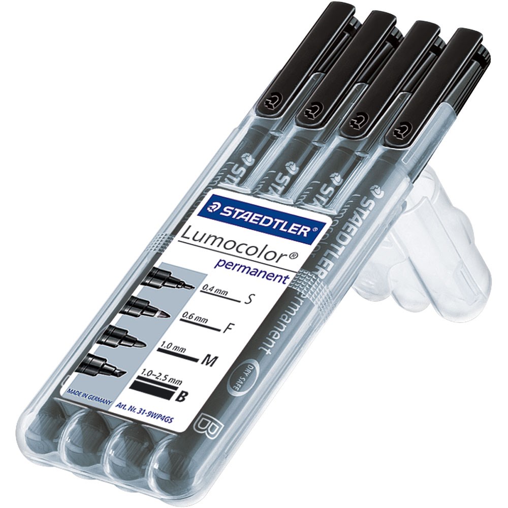 Vodootporan flomaster za pisanje po svim glatkim površinama (staklo, plastika, metal, folija). Pogodno za grafoskop. Suši se za nekoliko sekundi, tako da je idealno i za ljevake. Trajna tinta. Zajamčen dugi životni vijek trajanja. Dry Safe Ink tehnologija sprečava sušenje otvorenog markera do nekoliko dana. Siguran rad u zrakoplovu zahvaljujući sustavu za izjednačavanje tlakova koji sprječava istjecanje tinte (airplane safe). Crni ispis u debljinama S, F, M + B