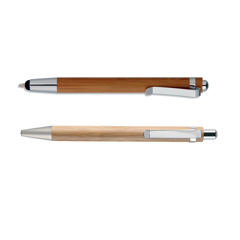 Set kemijska + tehnička olovka. Tijelo olovke od bambusa s kromiranim stiskačem, klipsom i vrhom. Kartonska poklon kutija. Plavi ispis.
