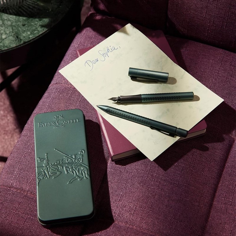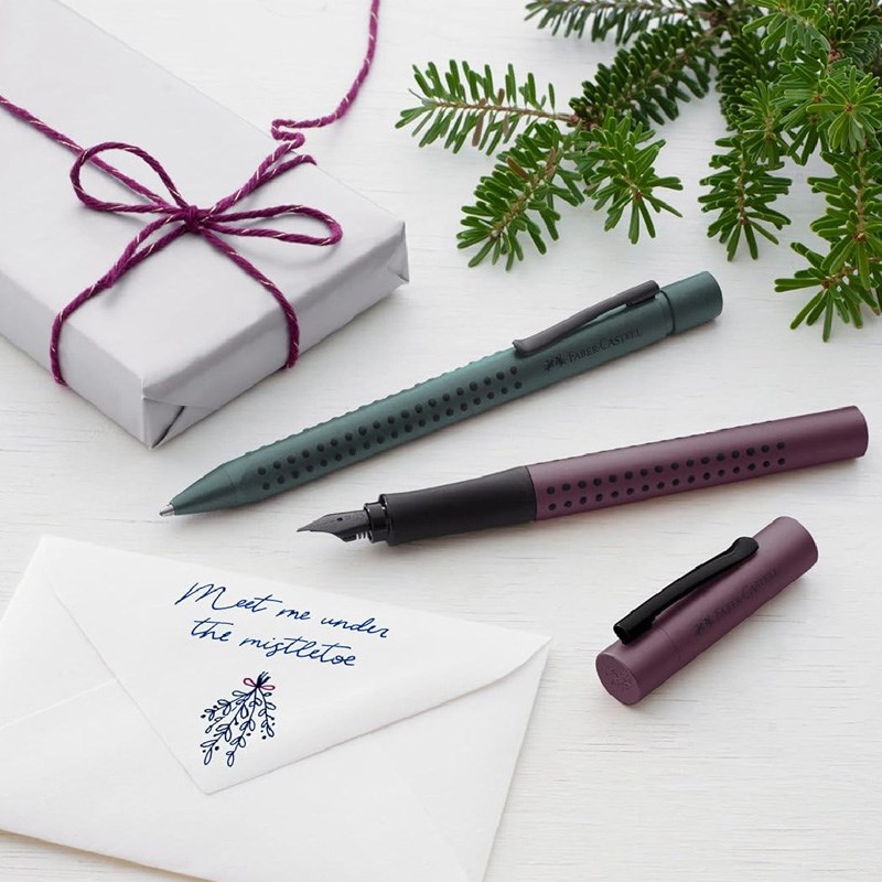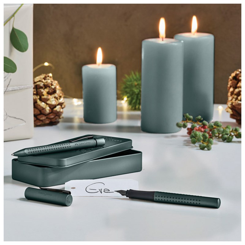 Pisaći set koji sadrži kergonomsku kemijsku olovku trokutastog oblika s mekanim gripom i nalivpero s gripo, debljine pera M. Podobno i za ljevake. U poklon kutiji. Pisaći set koji sadrži kergonomsku kemijsku olovku trokutastog oblika s mekanim gripom i nalivpero s gripo, debljine pera M. Podobno i za ljevake. U poklon kutiji.