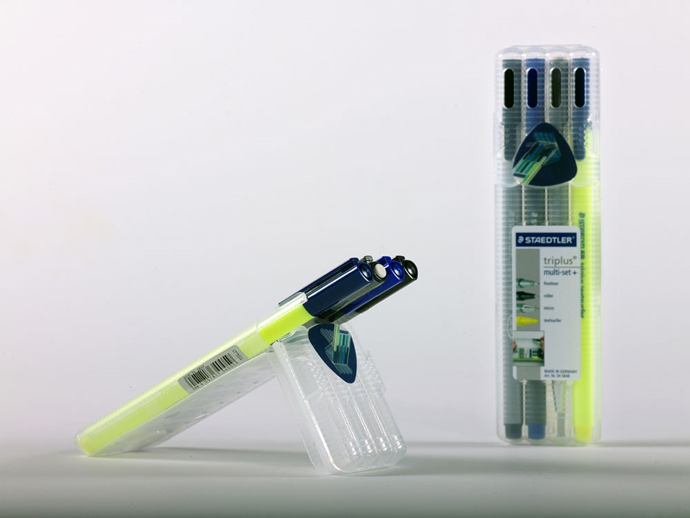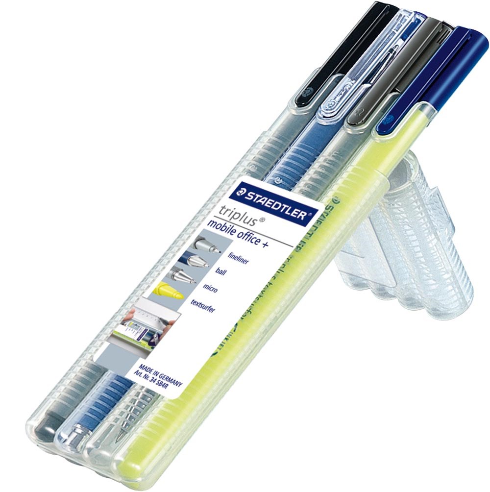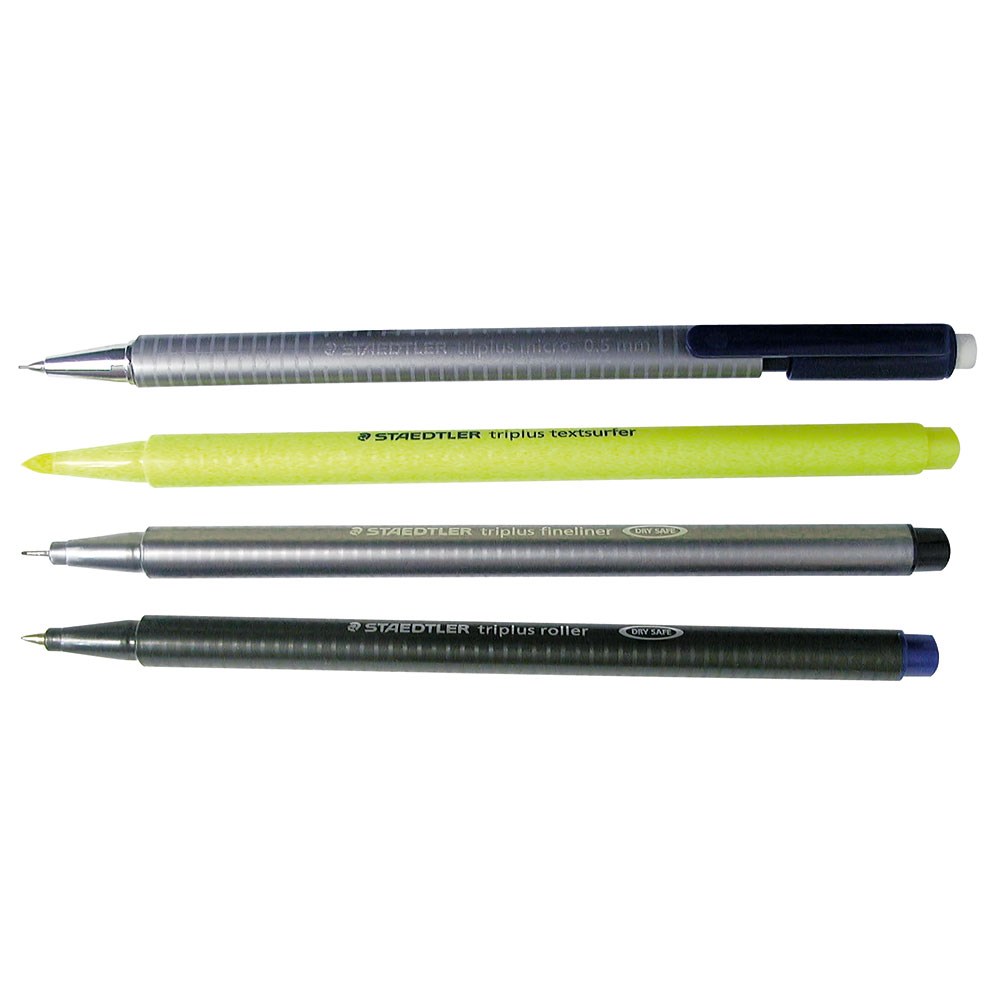 Sadrži crni fineliner, plavi roler, tehničku olovku 0,5, te žuti signir.
