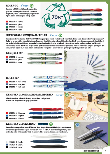 Plastično mutnoprozirno tijelo od recikliranog materijala s klipsom i stiskačem, ergonomični gumirani grip prstohvat. Begreen - 77,4% izrađena od recikliranih plastičnih boca (izuzev zamjenjivih dijelova).