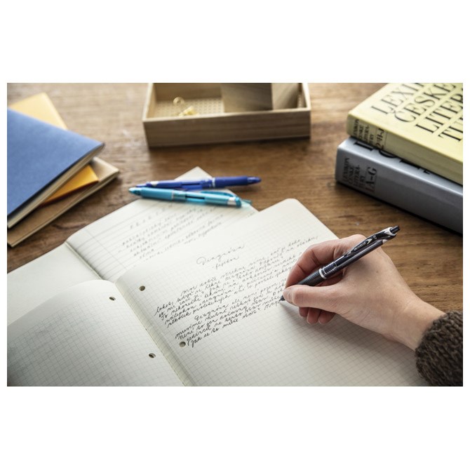 Nova generacija tinte na bazi ulja, vodootporna i brzo se suši; omogućuje neuobičajeno glatko pisanje bez prekidanja crte.