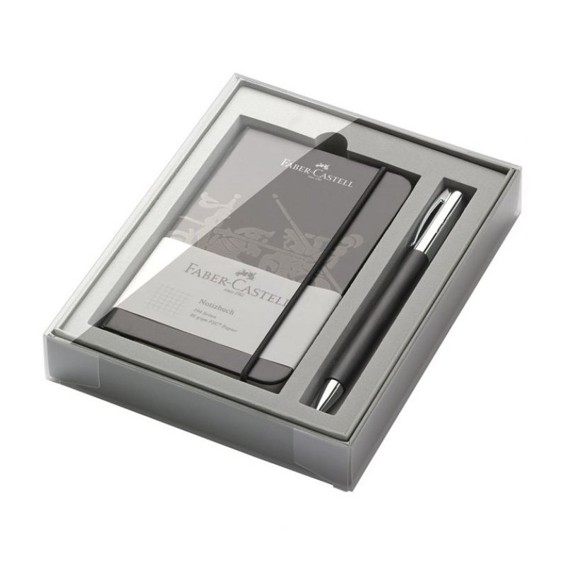Elegantna kemijska olovka čistih linija s metalnim klipom, kopčom i vrhom od kromiranog poliranog metala. Jasan vizualni dizajn u kombinaciji s profesionalnim funkcionalizmom. U kompletu s notesom A6 formata na kvadratiće u poklon kutiji.