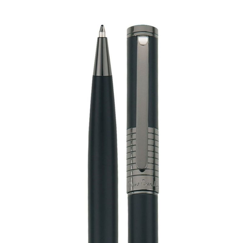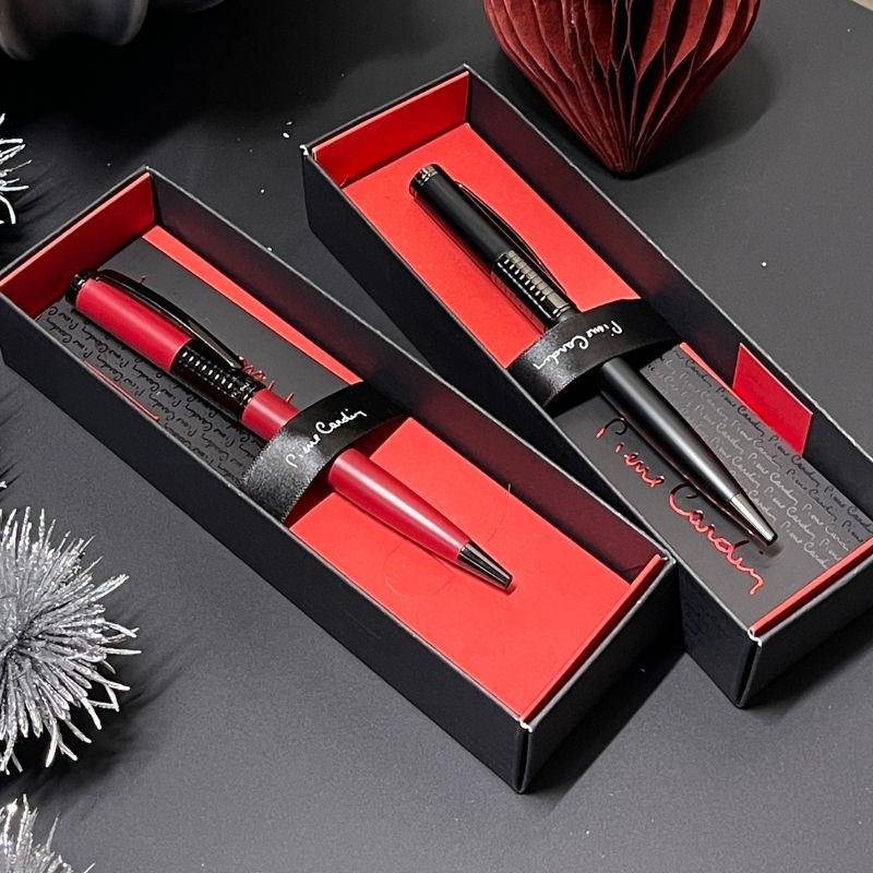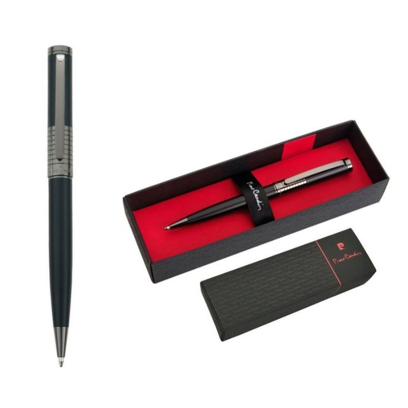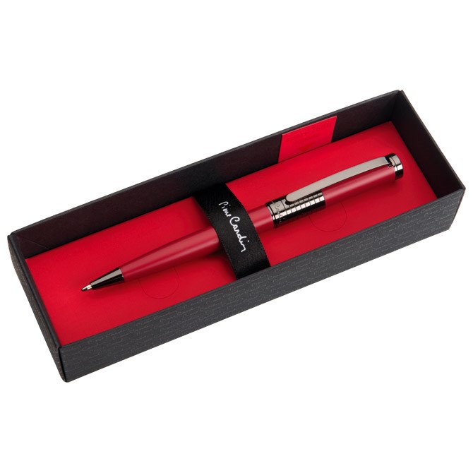 Luksuzna metalna kemijska olovka Pierre Cardin s elegantnom glatkom površinom i gravurom u boji metala. Mekani rotacijski okretni mehanizam stvara ugodan osjećaj za udobno pisanje. Kemijska olovka sadrži kvalitetno plavo punjenje s vrhom 1 mm, kao i rezervno crno punjenje. Nudi se u tri boje, i u luksuznoj kartonskoj Pierre Cardin kutiji.
