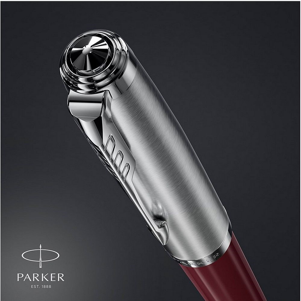 Izrađena od izdržljive, sjajne dragocjene smole s poklopcem od nehrđajućeg čelika i detaljima od paladija, te prepoznatljivom Parker strijelom.