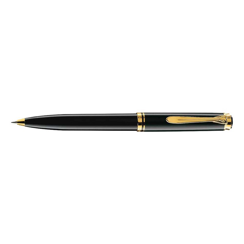 Elegantna Pelikan kemijska olovka Souverän® K800 je klasik iz Pelikana. Izrađena od visokokvalitetne smole, površina brušena dijamantom, klipsa i dekorativni prsteni pozlaćeni 24-karatnim zlatom. Izrada prepoznatljivog prugastog topa je složena, jer prema receptu razvijenom posebno za Pelikan, od pamučnog materijala u mnogo koraka izrađuje prugasti komad materijala koji se savija, brusi i zatim dijamantom reže po konturi. Paladinirani prstenovi na gornjem i donjem dijelu postavljeni su s najvećom preciznošću, stvarajući gotovo besprijekoran prijelaz između materijala prije nego što se pisaći instrument polira do visokog sjaja. Blago elastična, tipična Pelikanova kopča za kljun daje ovom visokokvalitetnom pisaćem instrumentu nepogrešiv dizajn. Kemijska olovka K800 opremljena je velikim uloškom u crnoj boji.
