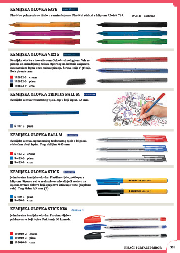 Jednokratna kemijska olovka. Prozirno tijelo s poklopcem u boji ispisa.