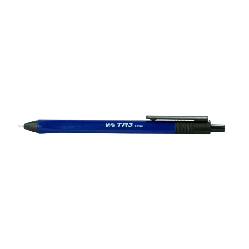 Plastična kemijska olovka trokutastog tijela. Stiskač, klipsa i vrh crni, tijelo u boji ispisa. Semi gel tinta, vrh 0,7 mm.