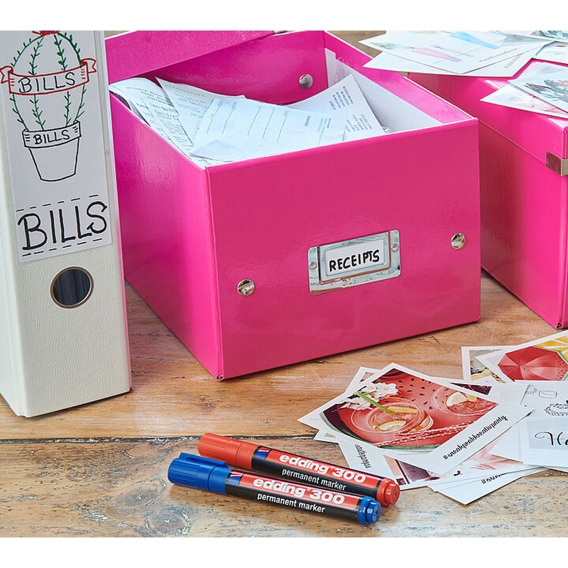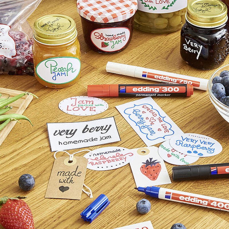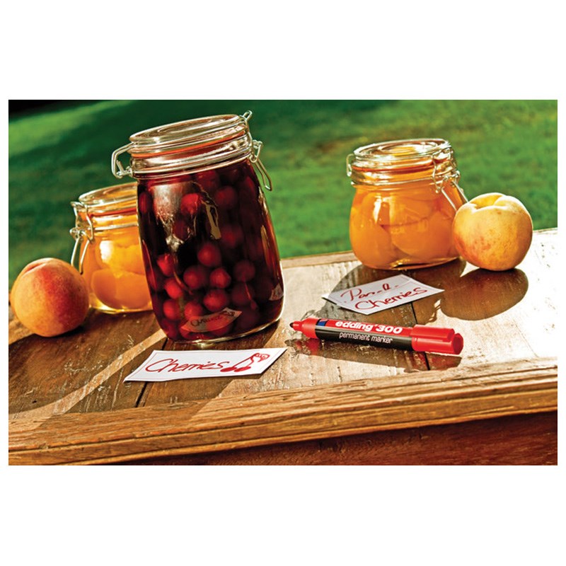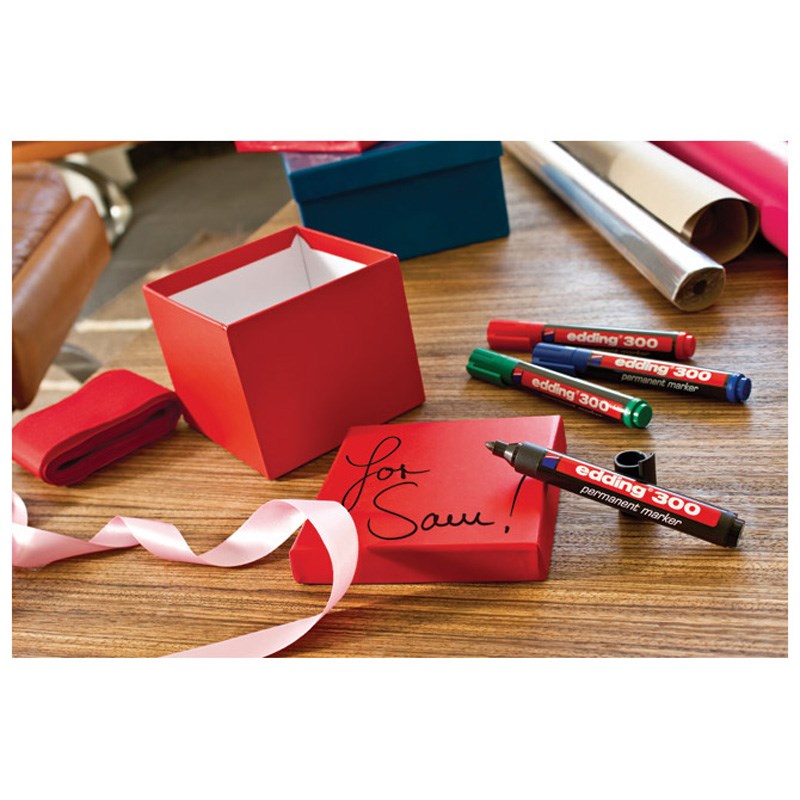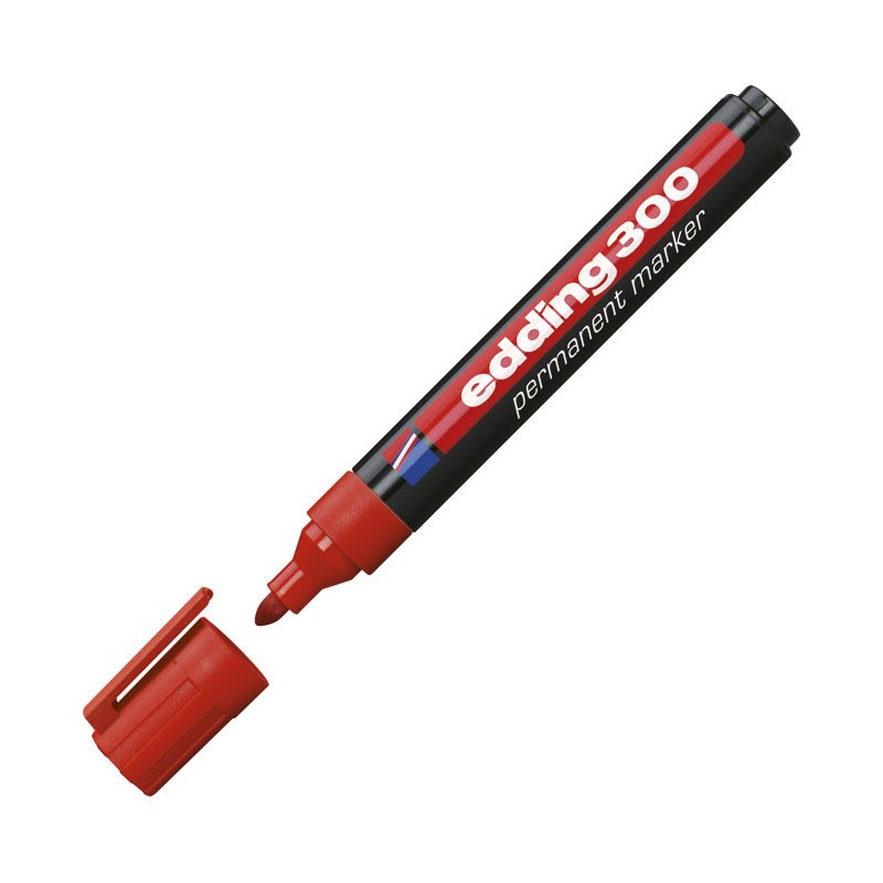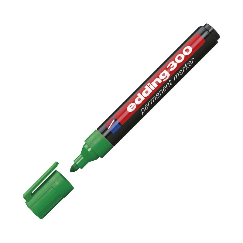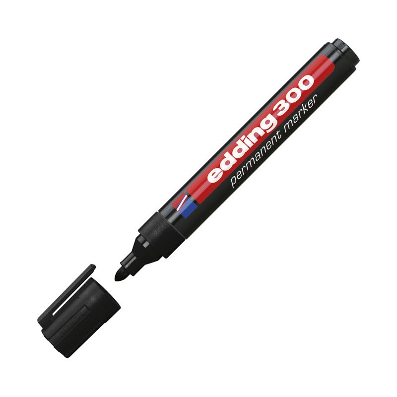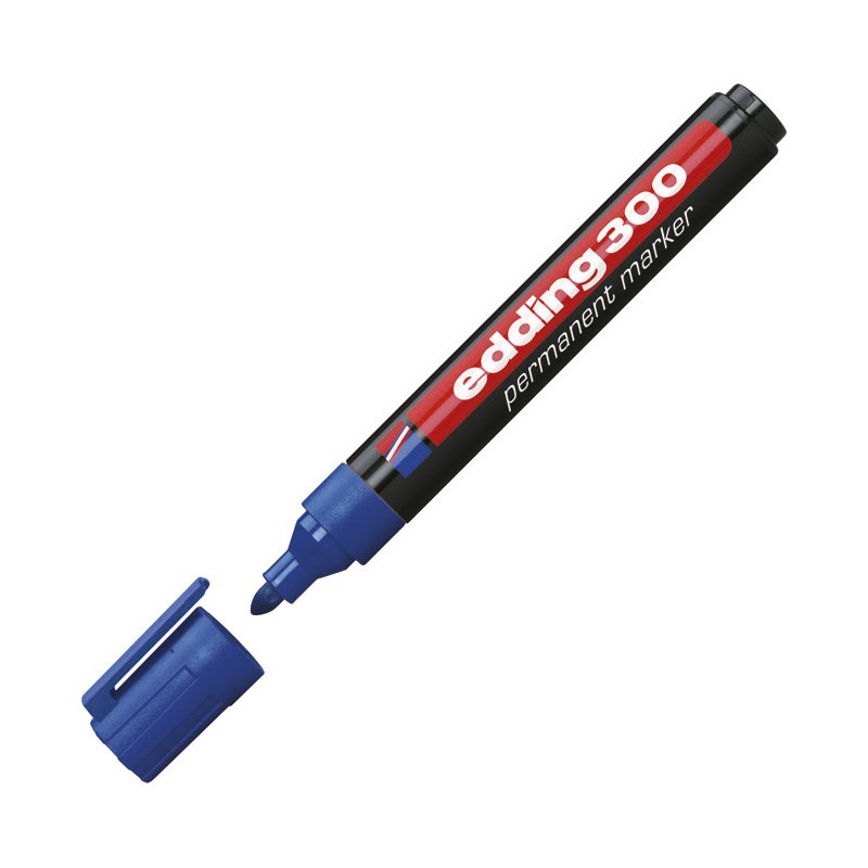 Permanent marker za pisanje po svim površinama (npr. papir, karton, metal, plastika, staklo, drvo). Vodootporan. Obli vrh, trag debljine 1,5-3,0 mm.
