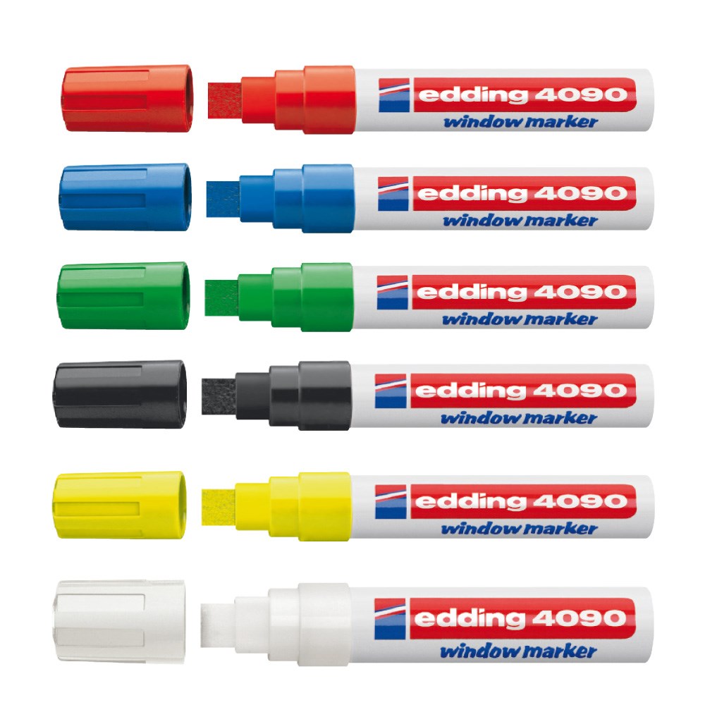 Marker s kredom za nepostojano ekstra široko oblikovanje, ukrašavanje i pisanje na neporoznim površinama, npr. prozori, tamne ploče, staklo, pleksiglas i ogledala. Idealan za kreativnu izradu kod kuće, ali i omiljen alat u restoranima, barovima ili industriji stakla. Neprozirna tekuća kreda na bazi vode neutralnog mirisa može se obrisati s gotovo svih neporoznih površina vlažnom krpom. Vrh širine ispisa od 4-15 mm.