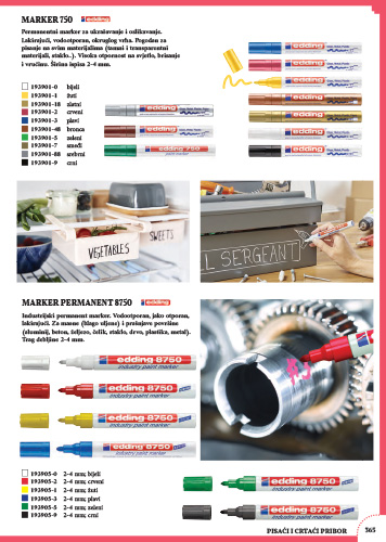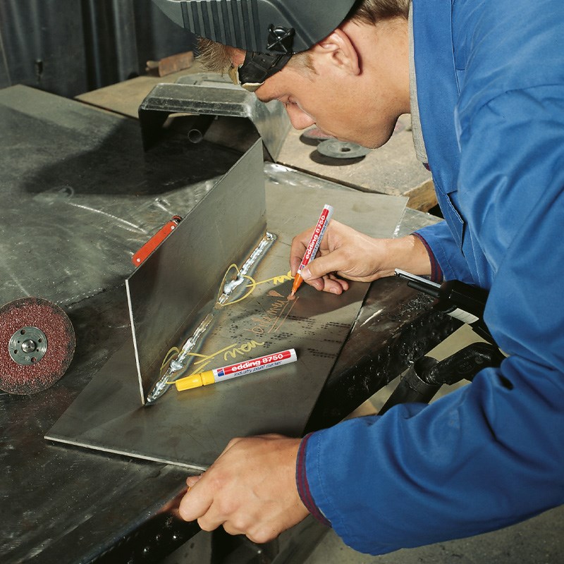 Industrijski permanent marker. Vodootporan, jako otporan, lakirajući. Za masne (blago uljene) i prašnjave površine (aluminij, beton, željezo, čelik, staklo, drvo, plastika, metal). Izuzetno postojana tinta je brzosušeća, vrlo neprozirna tako da je idealna za tamne površine. Otporna na vanjske utjecaje, ali i toplinu do 300 ° C. Savršeno rješenje za označavanje u teškim uvjetima, osobito za naftnu, metalnu i druge teške industrije. Obli vrh 2-4 mm.