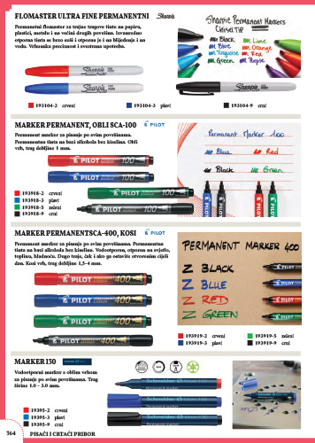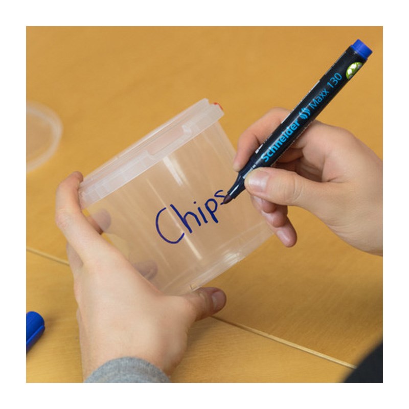 Vodootporni marker s oblim vrhom za pisanje po svim površinama. Kućište se sastoji od 95% reciklirane plastike, unutarnji spremnik tinte od 75% recikliranih vlakana. Za pisanje na kartonu, papiru, plastici, staklu, metalu, drvu i gotovo svim ostalim materijalima. Ispis se brzo suši, vodootporan je i otporan na svjetlost. Marker može ostati otvoren 2-3 dana. Ima slab miris i ne sadržI toluol i ksilol.