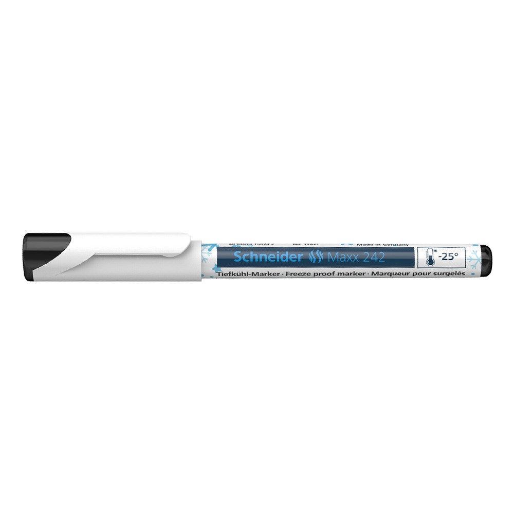 Marker otporan na smrzavanje. Otporan na mraz do -25⁰C, pouzdano označava sve što ide u zamrzivač. S debljinom linije od 1 mm i crnom tintom, natpis je lako čitljiv na gotovo svim površinama i olakšava brzo pronalaženje stvari u zamrzivaču. Natpis je postojan i otporan na habanje na vrećicama za zamrzavanje i naljepnicama za zamrzivač, ali se može brisati s glatkih plastičnih i staklenih posuda.