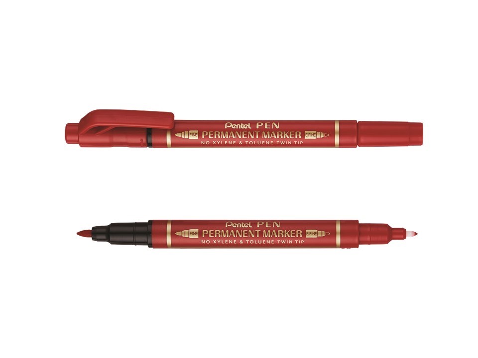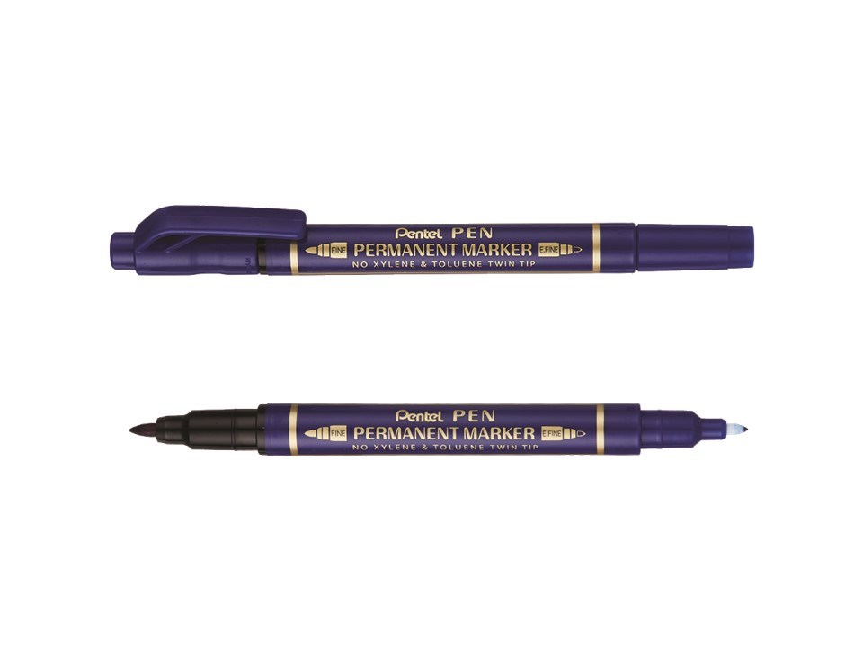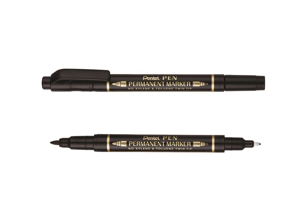Dvostruka glava. Širina pisanja 0,3 i 1,2 mm. Pogodan za pisanje po gotov svim površinama. Vodootporan. Plastično kučište s poklopcem i klipsom.