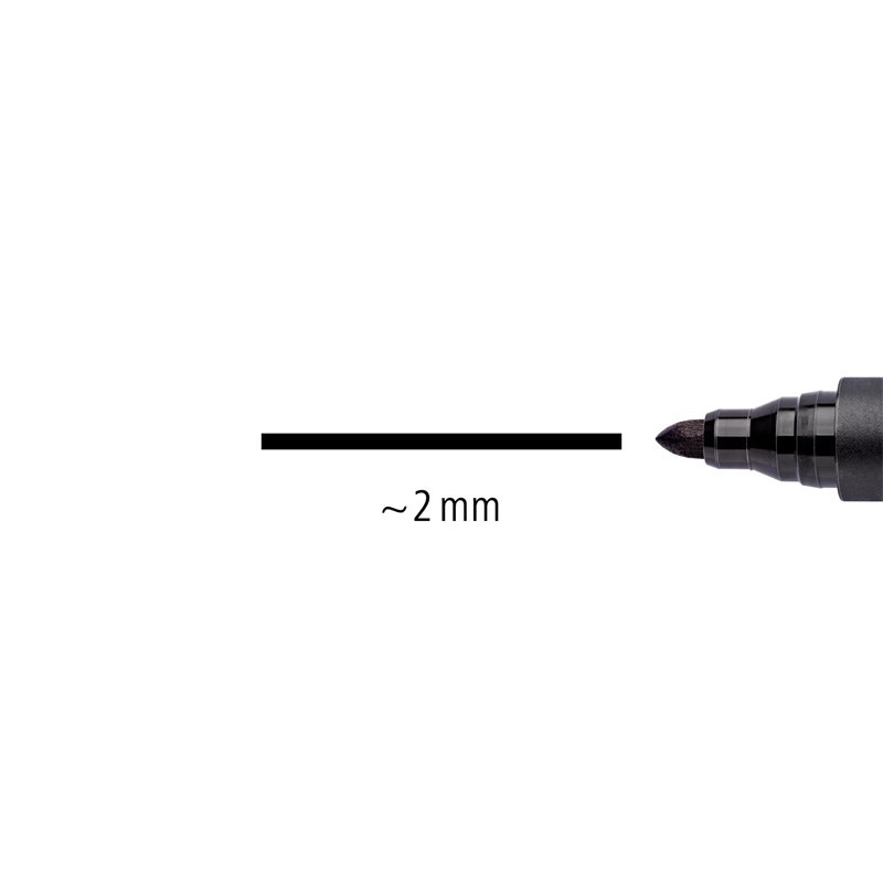 Marker za pisanje po svim površinama. Dry Safe Ink tehnologija sprječava sušenje otvorenog markera do 14 dana. Suši se za nekoliko sekundi, tako da je idealno i za ljevake. Airsafe tehnologija (automatsko izjednačavanje tlaka sprječava curenje olovke u zrakoplovu). Trag širine 2-5 mm.