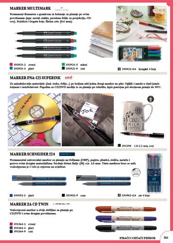 Za najzahtjevnije materijale (ind. trake, folije...) po kojima niti jedan drugi marker ne piše. Ugljik i smola u tinti jamče trajnost i neizbrisivost. Pogodan za CD/DVD medije te za pisanje po tekstilu, ispis postojan pri strojnom pranju do 90°C.