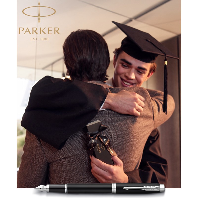 Moderno i uglađeno nalivpero. Lakirano tijelo s kromiranim rubom i prepoznatljivom Parker klipsom sa strelicom. Izdržljivo tanko pero (F) od nehrđajućeg čelika. Dolazi u poklon kutiji s dugom Quink patronom plave boje.