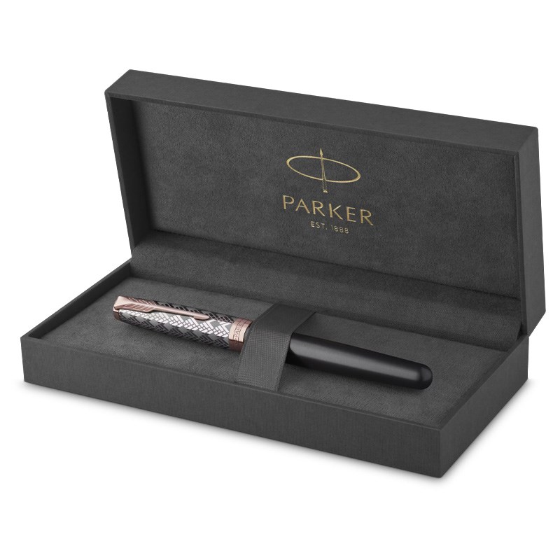 Nalivpero dolazi u sofisticiranoj poklon kutiji. Sa strane ima kraljevske naloge, što odražava baštinu marke Parker.