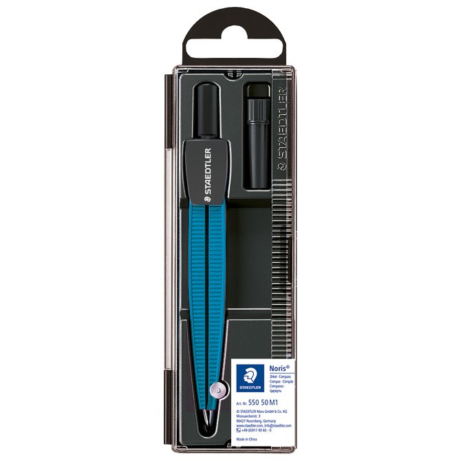 Školski šestar s tupljom iglom za veću sigurnost. Maksimalan promjer kružnice 300 mm. Duljina šestara: 124 mm. PVC kutija.