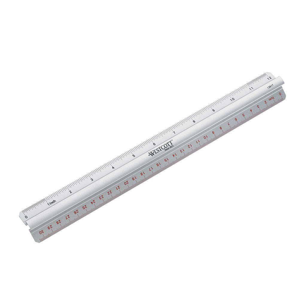 Aluminijsko ravnalo s uzdignutim držačem. Skala u centimetrima i inčima.