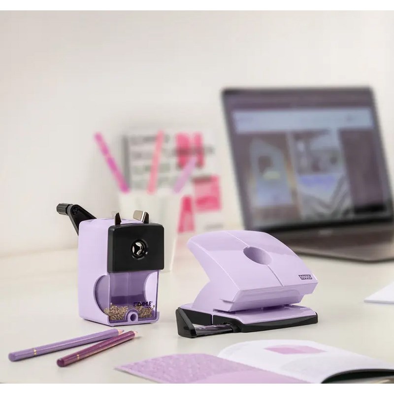 Rotaciono (ručno) stolno šiljilo s velikim spremnikom i čvrstom stegom za stol. Podesivi oblik vrha za sve vrste grafitnih olovaka i bojica do debljine 12 mm. Automatsko zaustavljanje šiljenja omogućava savršen vrh olovke. Rezači od visokokvalitetnog čelika.