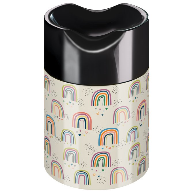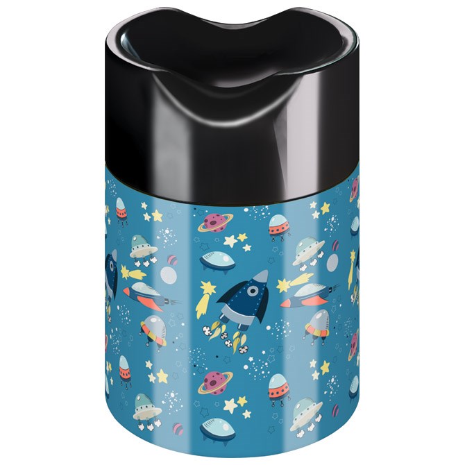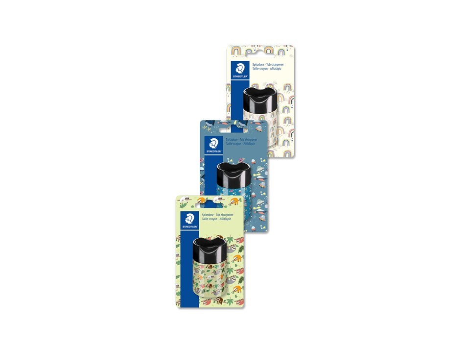 Šiljilo za olovke u PVC kutiji veselog šarenog motiva. Jedna rupa za standardne debljine olovke veličine do fi: 8mm. 3 različita motiva: ljenivci, duga i galaksija. Sortirano.