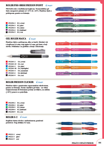 Piši-briši roler olovka plastičnog tijela s poklopcem i gumicom za brisanje. Termo osjetljiva gel tinta - na višim temperaturama ili brisanjem postaje nevidljiva, na niskim (-10°C) ponovo se pojavljuje.