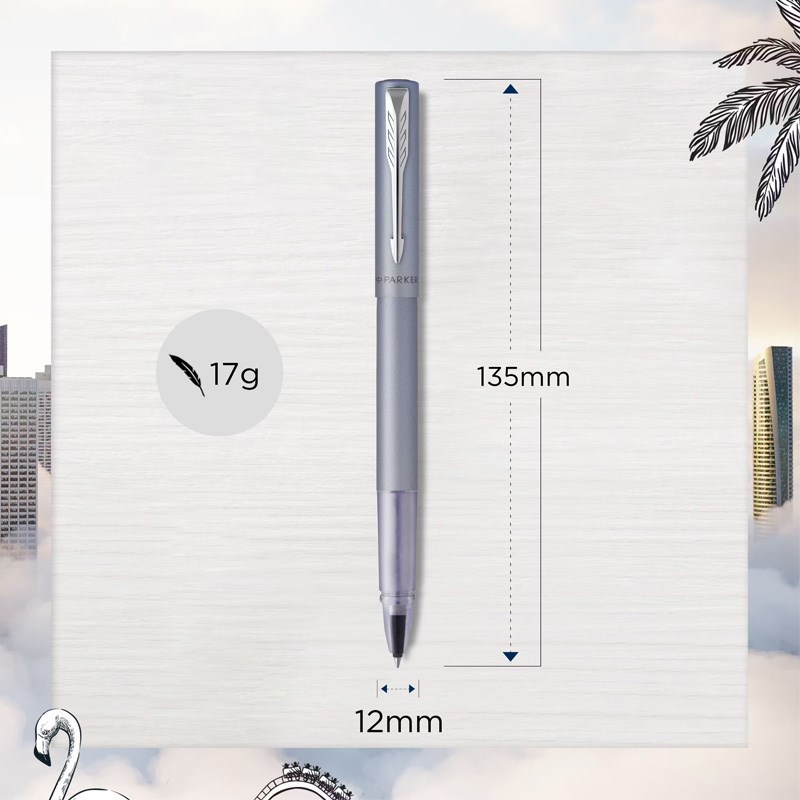 Sa satenskom završnom obradom upotpunjenom kromiranim rubovima i prepoznatljivom PARKER strelicom. Vector XL roler olovka ima nevjerojatno gladak vrh rolera koji omogućuje tečno pisanje bez preskakanja, za pružanje udobnog i dosljednog iskustva pisanja. Crni ispis, F debljine
