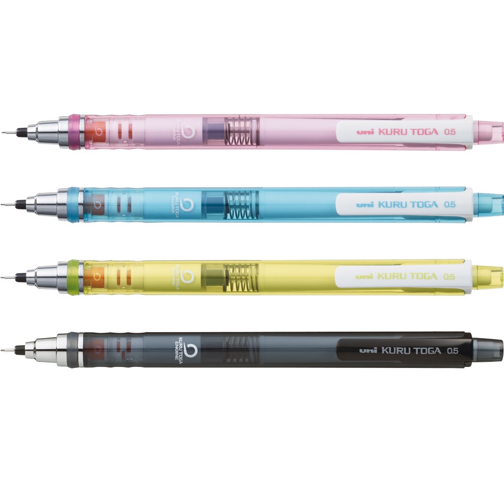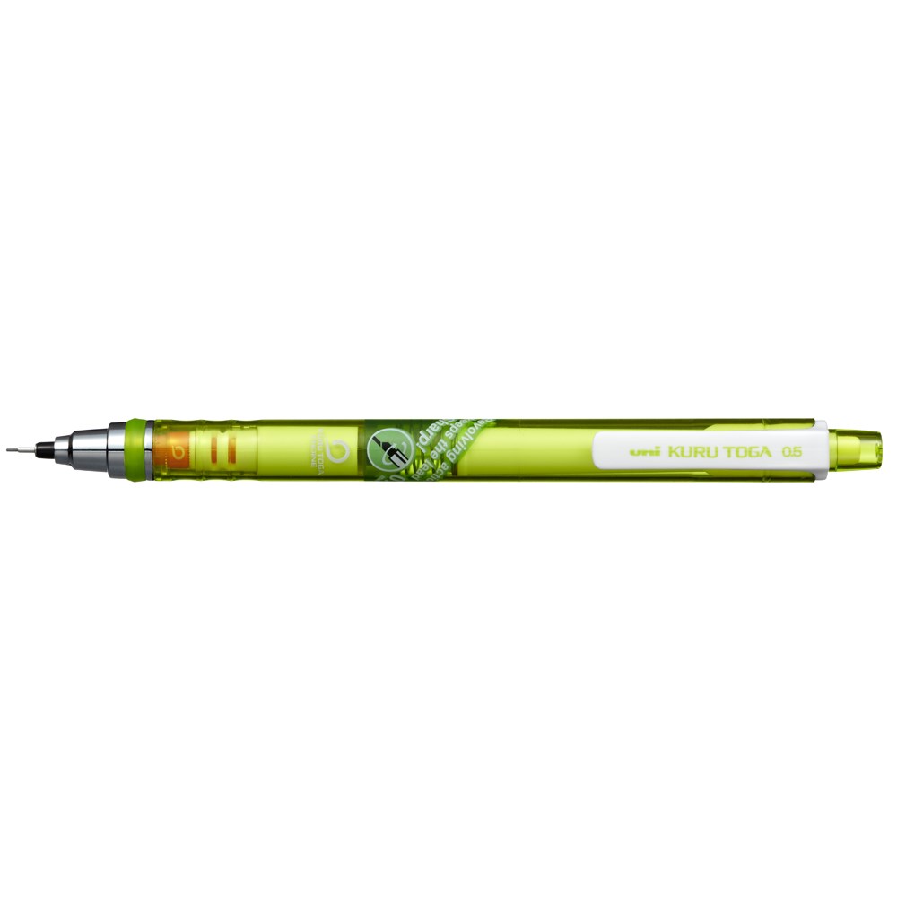 Rotacija vrha čini ispis ujednačenim zahvaljujući inovativnom mehanizmu "KURU TOGA ENGINE" zbog čega mina polako rotira tokom pisanja i sama se šilji. Piše jasnom, tankom linijom konstantne kvalitete.