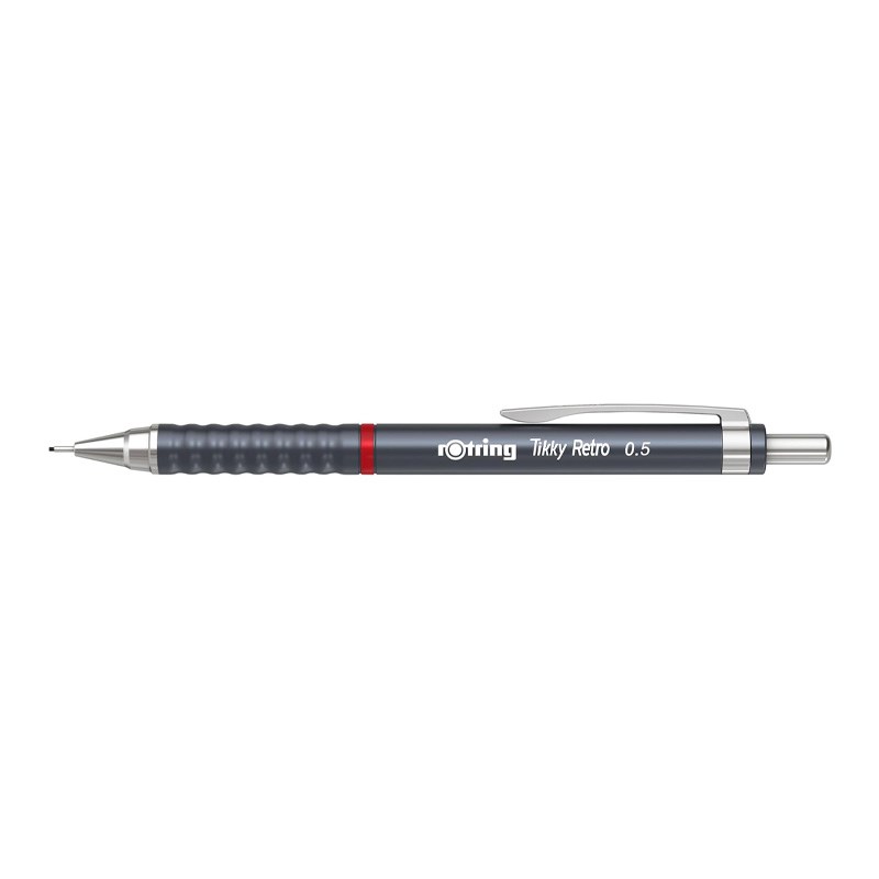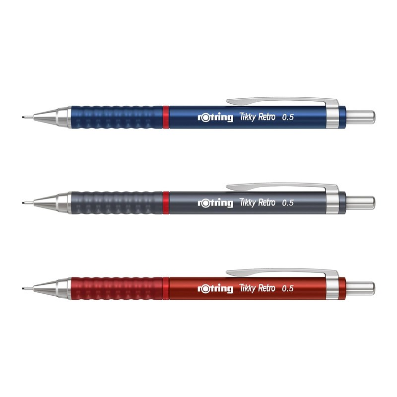 Skicirajte i pišite pouzdano s rOtring Tikky retro tehničkom olovkom. Vrh koji se može uvući sprječava lomljenje olova, tako da je svaka linija koju napravite oštra i jasna. Naborati ergonomsli rukohvat i lagana cijev pružaju iznimnu udobnost. Ugrađena gumica ispod poklopca s gumbom. Olovke su dostupne u hrabrim retro bojama.