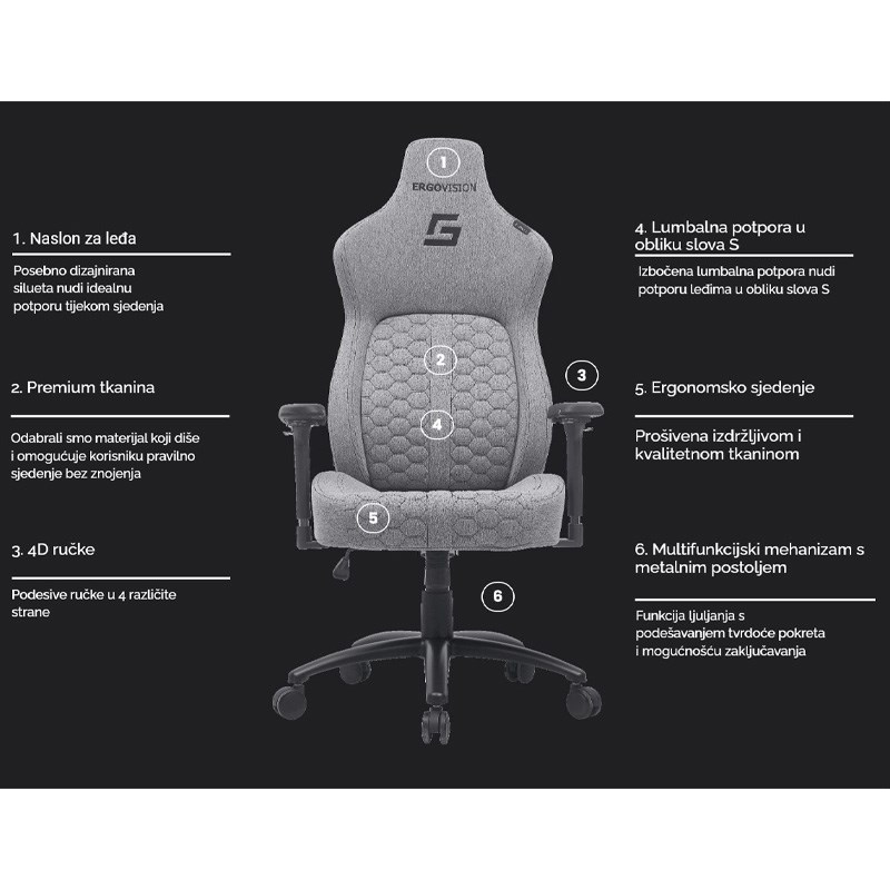 Gaming stolac modernog dizajna za udobnost i performanse za duge sate igranja ili rada. Sjedalo je presvučeno čvrstom pjenom i kvalitetnom tkaninom ugodnom na dodir. Konveksna lumbalna potpora u naslonu stolice i dodatna bočna potpora grli tijelo i daje osjećaj sjedenja u vrhunskom sportskom automobilu. Okvir stolice izrađen je od visokokvalitetnih materijala koji su garancija dugog vijeka trajanja. Mogućnost prilagodbe visine stolice, 4D ručke, te funkcija ljuljanja. Podesivi kut naslona omogućuje zaključavanje u različitim položajima, od fokusiranog igranja, do opuštenog praćenja streamova ili čak ležanja (od 90° sve do vodoravnog položaja). Priložena su i dva jastuka za još udobniji oslonac za glavu i lumbalni dio kralježnice. Prikladna je za korisnike visine od 170 do 200 cm i pruža iznimnu nosivost od 150 kg!
