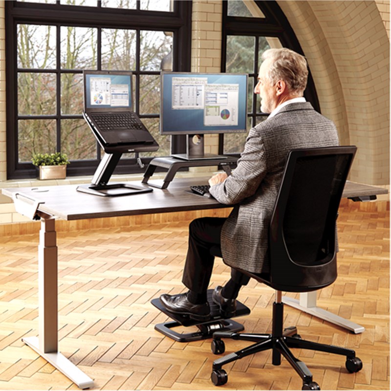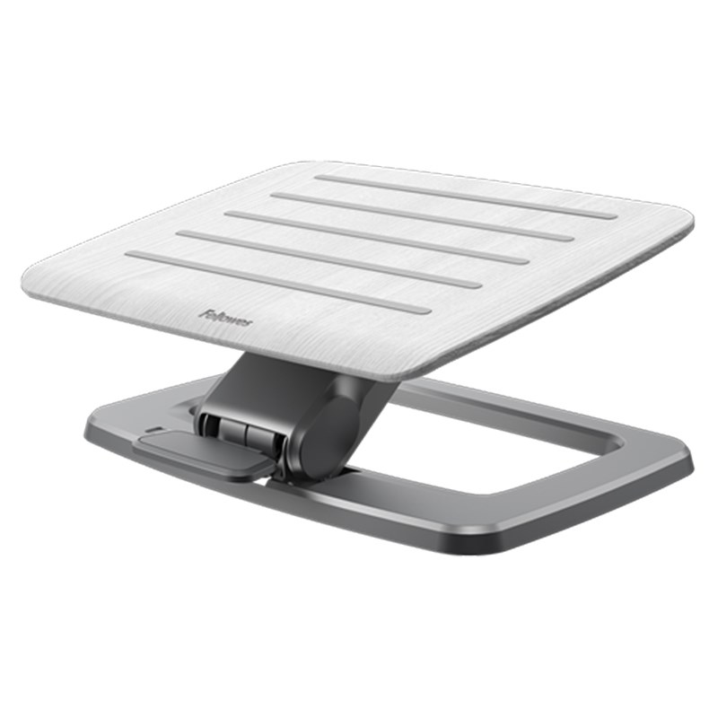 Moderna metalna baza s neklizajućom završnom obradom od pravog drveta, dostupna u crnoj ili bijeloj boji. Postavka lagane ili teške napetosti za podešavanje lakoće pokreta. Dvije postavke visine za sjedenje i stajanje. Promjena položaja visine laganim podešavanjem stopala.