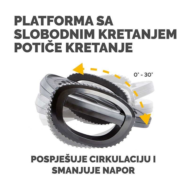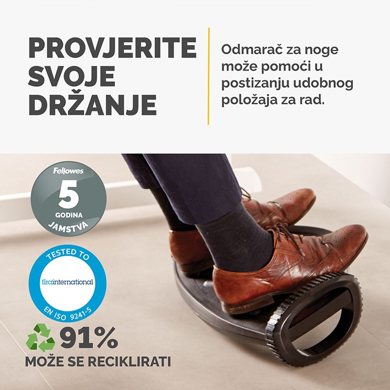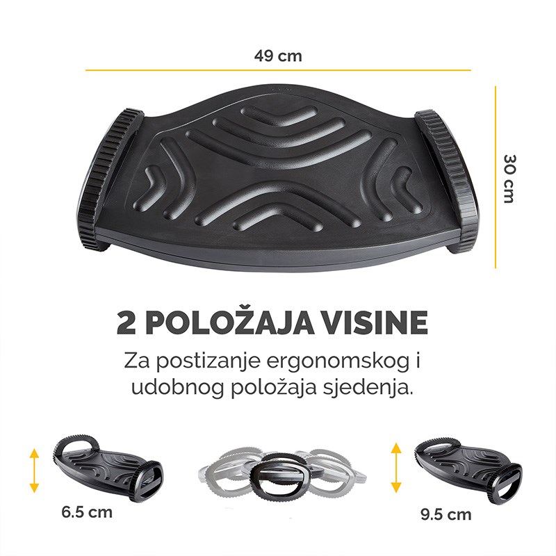 Oslonac za noge kompaktnog dizajna. Jednostavno podešavanje visine platforme na 65 ili 95 mm. Njišuće gibanje poboljšava cirkulaciju i smanjuje umor.